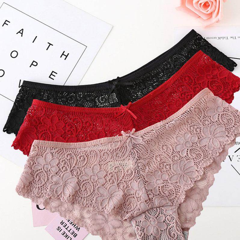 3 ชิ้น SEXY Lace Women กางเกงชั้นในแบบแฟชั่นกางเกงขาสั้นชุดชั้นในกางเกงขาสั้นน่ารักเป้าฝ้ายเอวต่ำน่ารักผู้หญิงชุดชั้นในกางเกงเซ็กซี่