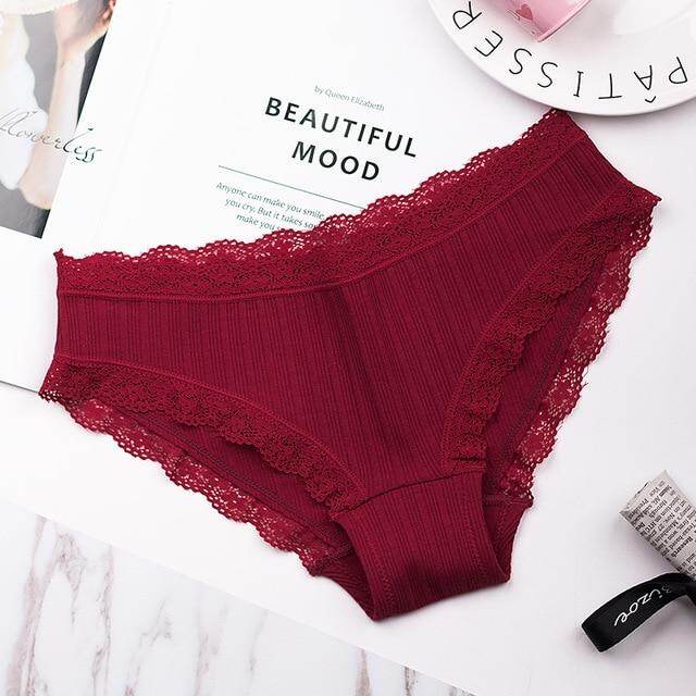 Famous Brand Womens Cotton Panties Female Lace Edge Breathable Briefs Sexy Underwear Women Cotton Crotch Lingerie Intimates